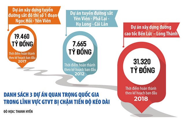 Đặc điểm chung của cả 3 dự án này là đều đang triển khai dang dở, mốc thời hạn hoàn thành bị vỡ rất sâu so với kế hoạch ban đầu (khoảng 10 năm), thậm chí, còn chưa định được thời gian hoàn thành.