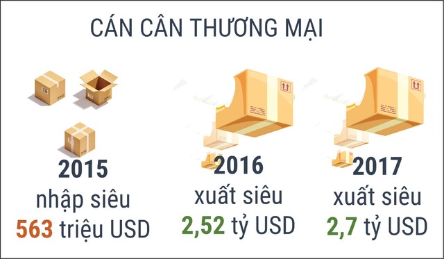 Dựa trên nền tảng tăng trưởng này, nhiều ngành, lĩnh vực tự tin trong việc xác định mục tiêu xuất khẩu năm 2018, chẳng hạn như nông nghiệp đặt mục tiêu kim ngạch xuất khẩu đạt 40 tỷ USD, dệt may đạt 34 tỷ USD, da giày đạt 20 tỷ USD, thủy sản đạt 9 tỷ USD…