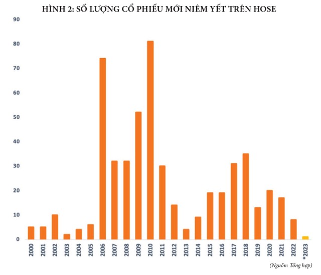 Tại Việt Nam, theo số liệu từ Sở Giao dịch chứng khoán TP.HCM (HOSE), trong 6 tháng đầu năm, chỉ duy nhất một cổ phiếu niêm yết mới là PVP của Công ty cổ phần Vận tải dầu khí Thái Bình Dương. Còn thống kê của Ủy ban Chứng khoán Nhà nước cho biết, tính đến cuối tháng 4/2023, số lượng các doanh nghiệp niêm yết đã giảm so với thời điểm cuối năm 2022, cụ thể: HOSE giảm 2 doanh nghiệp (từ 402 doanh nghiệp xuống 400 doanh nghiệp); Sở Giao dịch chứng khoán Hà Nội (HNX) giảm 3 doanh nghiệp (từ 341doanh nghiệp xuống 338 doanh nghiệp). Bên cạnh thiếu vắng các hoạt động phát hành mới, việc giảm số lượng doanh nghiệp niêm yết cũng khiến nhà đầu tư hạn chế hơn trong việc lựa chọn sản phẩm đầu tư.
