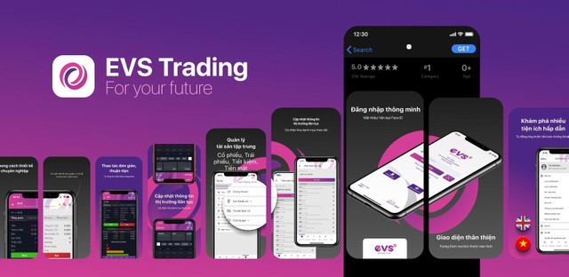 Với bộ nhận diện thương hiệu mới ra mắt đầu năm 2022, EVS đã đồng bộ trên thiết kế giao diện của EVS Mobile Trading. Ứng dụng với phong cách tối giản, trẻ trung và hiện đại, đón đầu xu hướng của năm với lựa chọn tông màu tím là màu chủ đạo.