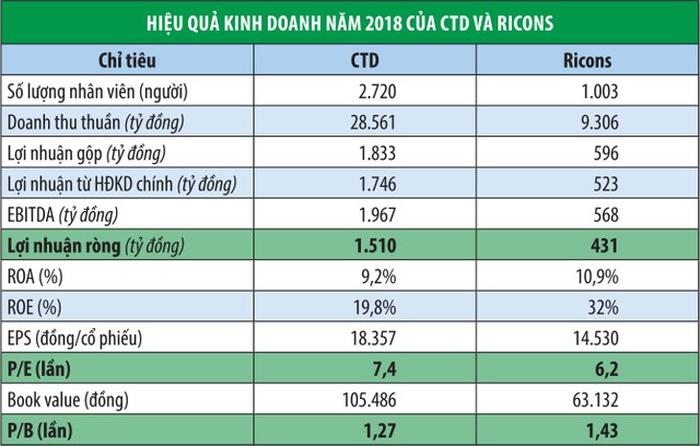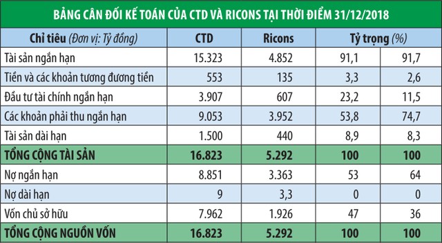Ðể hoàn thiện chuỗi giá trị và tối ưu hóa lợi ích cổ đông, CTD dự kiến sáp nhập Ricons ngay trong quý I/2019. Dù vậy, hiện CTD vẫn chưa có thông báo mới về việc triệu tập họp Ðại hội đồng cổ đông bất thường để thông qua phương án sáp nhập.