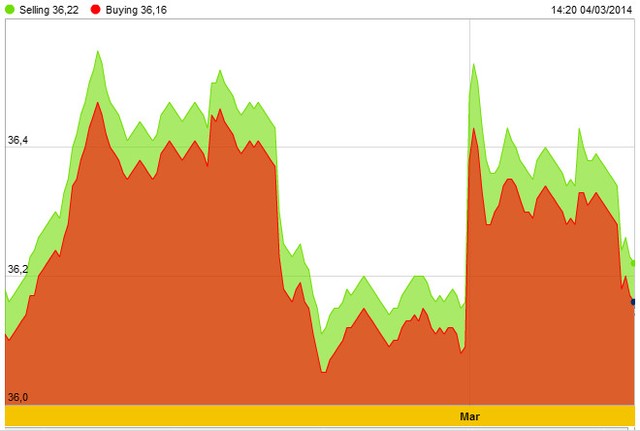 Trên thị trường quốc tế, cặp EUR/USD, sau khi đạt mức cao 1,3825 cuối tuần trước, đang giảm trở lại, đến 5h chiều qua còn 1,3756. Cặp USD/JPY tăng từ mức 101,2 lên 101,8 trong cùng thời gian.