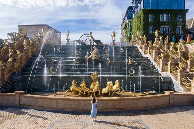 Tọa lạc tại quảng trường Beer Plaza, Thác Thần Mặt Trời là tác phẩm ấn tượng nhất ở Bà Nà Hills mới ra mắt hè này. Lộng lẫy, hoành tráng thu hút mọi ánh nhìn, công trình khiến du khách không ngừng thán phục, trước sự tinh xảo của người tạo tác các bức tượng.