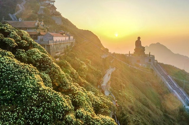 Dịp này, những vạt đỗ quyên vàng đặc trưng dãy Hoàng Liên Sơn cũng đang bừng nở rực rỡ. Hành trình du ngoạn tới đỉnh Fansipan bằng cáp treo, du khách sẽ được thấy đỗ quyên vàng ngợp ngời từ độ cao hơn 2.000m lên tới đỉnh. Giống đỗ quyên vàng đặc biệt có nhiều ở dọc đường La Hán, khu vực quần thể tâm linh Kim Sơn Bảo Thắng Tự.