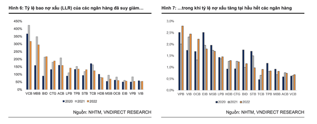 Tuy nhiên, VNDirect cho rằng, giá cổ phiếu ngành ngân hàng có phần phụ thuộc vào diễn biến chất lượng tài sản của ngành nhiều hơn là diễn biến tăng trưởng lợi nhuận. Nhà đầu tư cho rằng các ngân hàng sẽ ghi nhận tăng trưởng lợi nhuận một cách bền vững hơn trong dài hạn, nếu như chất lượng tài sản thực sự được cải thiện.