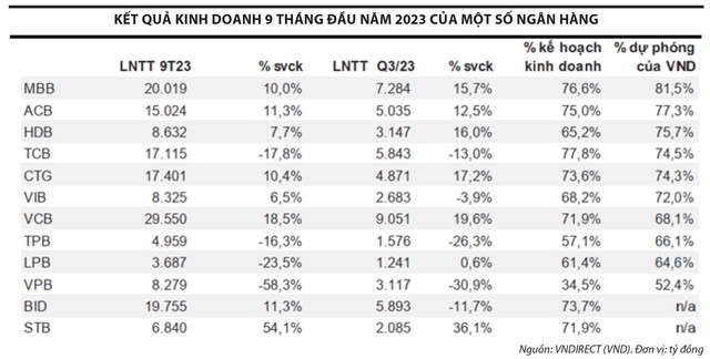 Kết thúc tháng 9, đa số ngân hàng niêm yết thực hiện được 50 - 60% kế hoạch lợi nhuận năm 2023, có 8 ngân hàng đạt dưới 50%.