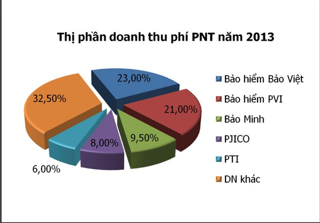Trong khối bảo hiểm phi nhân thọ, Bảo Việt vẫn đứng đầu thị trường với doanh thu phí bảo hiểm năm 2013 đạt 5.626 tỷ đồng, chiếm thị phần 23%. Tiếp đến là PVI, với doanh thu phí bảo hiểm đạt 5.098 tỷ đồng, chiếm thị phần 21%; Bảo Minh với doanh thu phí bảo hiểm 2.308 tỷ đồng, chiếm 9,5% thị phần; PJICO đạt 1.976 tỷ đồng doanh thu, chiếm thị phần 8%; PTI đạt 1.463 tỷ đồng, chiếm thị phần 6%.