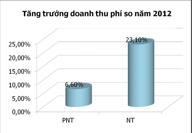 Tổng doanh thu phí bảo hiểm toàn thị trường bảo hiểm năm qua ước đạt 47.007 tỷ đồng, tăng 14% so với năm 2012. Trong đó, khối phi nhân thọ ước đạt doanh thu 23.359 tỷ đồng (tăng 6,6% so với năm 2012); khối nhân thọ ước đạt 22.648 tỷ đồng (tăng 23,1% so với năm 2012).