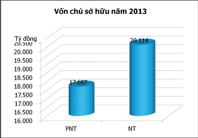 Tổng nguồn vốn chủ sở hữu toàn thị trường tính đến thời điểm 31/12/2013 ước đạt 37.801 tỷ đồng (tăng 15,1% so với năm 2012). Các DN bảo hiểm phi nhân thọ có tổng vốn chủ sở hữu ước đạt 17.687 tỷ đồng, tăng 2,5% so với năm 2012, các DN bảo hiểm nhân thọ ước đạt 20.114 tỷ đồng, tăng 12% so với năm 2012.