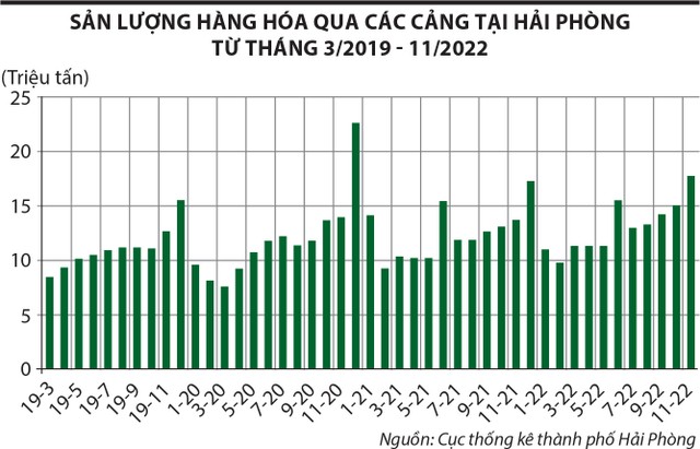 Số liệu thống kê cho thấy, trong vòng 10 năm qua, tốc độ xuất nhập khẩu tăng trưởng ấn tượng, đạt 14%/năm. Các doanh nghiệp cảng biển được hưởng lợi đầu tiên, vì nguyên vật liệu và thành phẩm xuất nhập khẩu đều phải thông qua cảng biển.