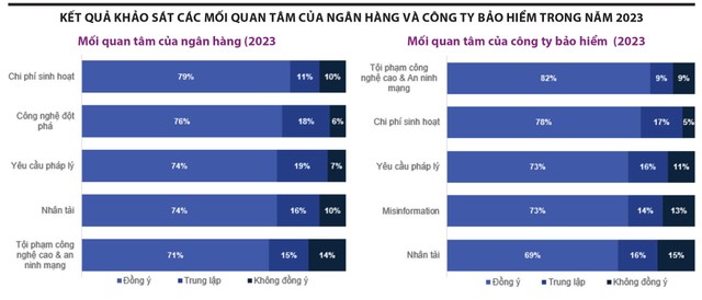 Các mối quan ngại phổ biến như “rủi ro lãi suất” hay “rủi ro danh tiếng/thương hiệu” đã giảm đi vào năm 2023. Sự gia tăng ứng dụng công nghệ trong các ngân hàng dẫn đến nhiều sự chú ý đến rủi ro công nghệ hơn. Đây tiếp tục là mối quan tâm lớn đối với các nhà lãnh đạo ngân hàng.