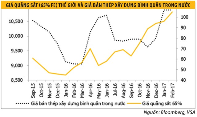 Tuy nhiên, khác với năm 2016, giá nguyên liệu thép trong thời gian gần đây tăng nhanh và mạnh hơn. Điều này có thể tạo e ngại biến động lớn có thể xảy ra trong năm nay, dù triển vọng chung đối với giá thép thế giới đang khá lạc quan, chủ yếu đến từ kỳ vọng Trung Quốc (quốc gia sản xuất thép lớn nhất thế giới) cắt giảm sản lượng.