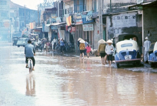 60 năm trước ôtô xếp hàng dài, nước cũng ngập nửa bánh xe trên các tuyến đường ở trung tâm thành phố.