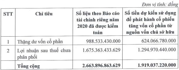 Tổng giá trị phát hành theo mệnh giá là hơn 1.919 tỷ đồng. Nguồn vốn phát hành từ thặng dư vốn cổ phần và lợi nhuận sau thuế chưa phân phối tại thời điểm ngày 31/12/2020. KBC sẽ ưu tiên sử dụng thặng dư vốn cổ phần trước nguồn từ lợi nhuận sau thuế chưa phân phối.