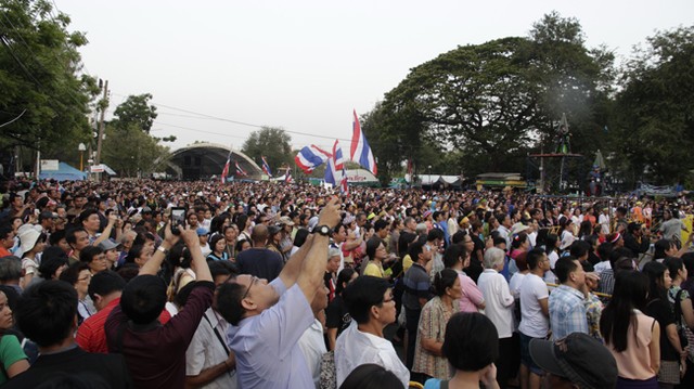 Theo ông Suthep Thausuban, cựu Phó Thủ tướng và hiện là thủ lĩnh biểu tình chống chính phủ cuộc biểu tình được bố trí lại tuần hành theo quy mô lớn. Hàng nghìn ủng hộ PDRC đổ về Công viên Lumpini với những dãy hàng bán đồ lưu niệm phục vụ biểu tình, đồ ăn miễn phí được những người ở phía nam Thái Lan mang đến nấu, đã tạo ra không khí biểu tình vừa trang nghiêm vừa nhộn nhịp, tấp nập. Đây cũng là một điểm đến để những du khách đến thủ đô Bangkok đến tham quan trải nghiệm, chụp ảnh lưu niệm không khí biểu tình.