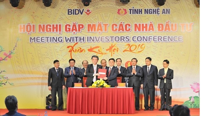 Tỉnh Nghệ An đã ký Biên bản hợp tác chiến lược toàn diện với Công ty TNHH Mitsubishi Corporation Việt Nam và với Ngân hàng Công thương Việt Nam (Vietinbank). Đặc biệt, lãnh đạo tỉnh Nghệ An trao quyết định chấp thuận chủ trương đầu tư/chứng nhận đăng ký đầu tư cho 13 dự án với tổng mức đầu tư 7.703 tỷ đồng và 18 dự án ký biên bản ghi nhớ hợp tác đầu tư với tổng mức đầu tư dự kiến 14.274 tỷ đồng. Đây là tổng số vốn của 31 dự án được trao các quyết định chấp thuận chủ trương đầu tư/chứng nhận đăng ký đầu tư và ký biên bản ghi nhớ hợp tác đầu tư tại Hội nghị Gặp mặt nhà đầu tư Xuân Kỷ Hợi 2019 do tỉnh Nghệ An phối hợp với Ngân hàng Thương mại cổ phần Đầu tư và Phát triển Việt Nam (BIDV) tổ chức chiều 23/2 tại thị xã Cửa Lò.