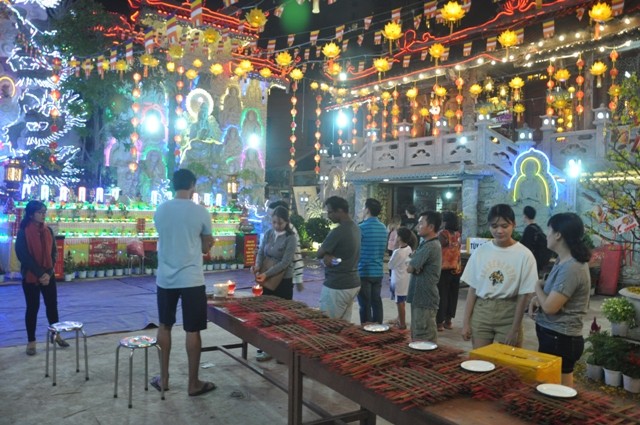 Sau khi chiêm ngưỡng những màn pháo hoa chào năm mới, người dân Đà Nẵng lại đi lễ chùa, nhiều ngôi chùa vì vậy mà trở nên quá tải, đông kín người. Tuy nhiên, không có cảnh chén lấn, mà mọi người từ tốn thành kính dâng hương để cầu mong một năm mới Kỷ Hợi nhiều may mắn và hạnh phúc.