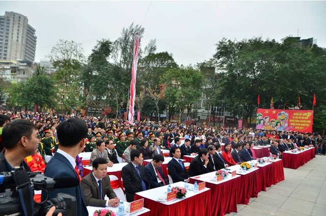Đông đảo đại biểu và người dân tập trung tại khu vực quảng trường Gò Đống Đa theo dõi lễ hội
