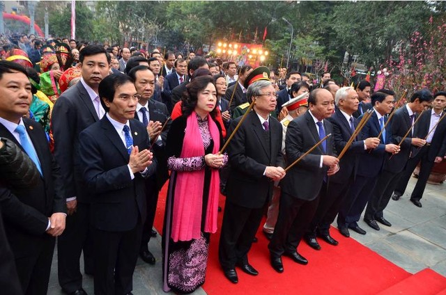 Tới dự Lễ kỷ niệm 228 năm chiến thắng Ngọc Hồi - Đống Đa sáng nay có: Ủy viên Bộ Chính trị - Thủ tướng Chính phủ Nguyễn Xuân Phúc; Ủy viên Bộ Chính trị - Bí thư Thành ủy Hà Nội Hoàng Trung Hải; Ủy viên Trung ương Đảng - Phó Bí thư thường trực Thành ủy Hà Nội Ngô Thị Thanh Hằng; Ủy viên Trung ương Đảng - Chủ tịch UBND TP Hà Nội Nguyễn Đức Chung cùng đại diện lãnh đạo các bộ, ngành và Thành phố Hà Nội