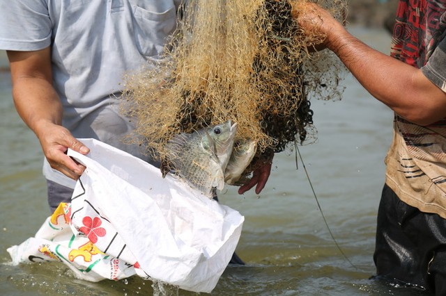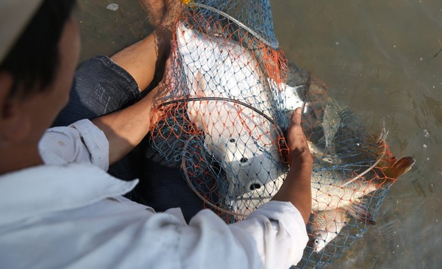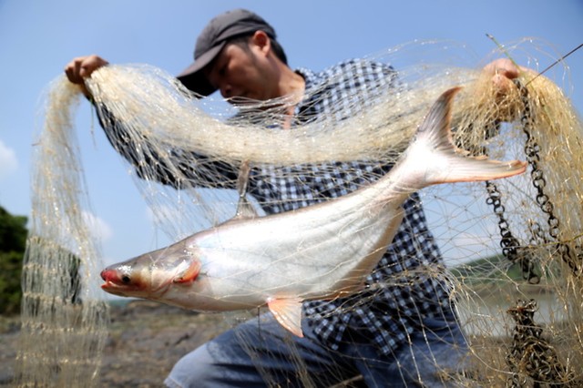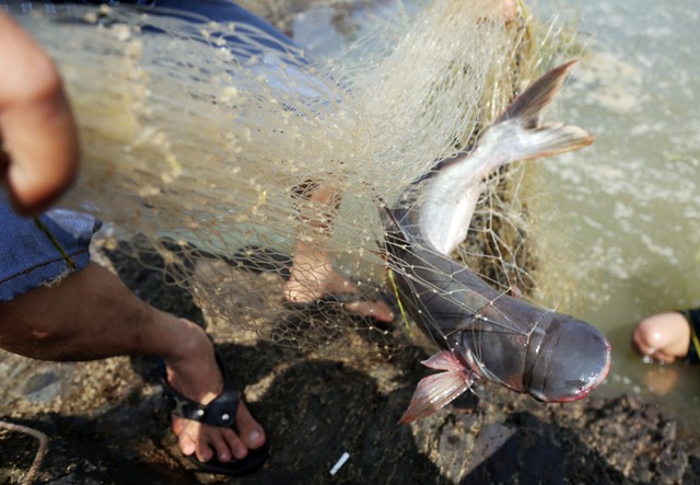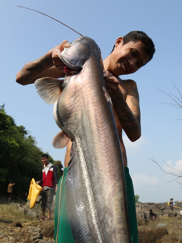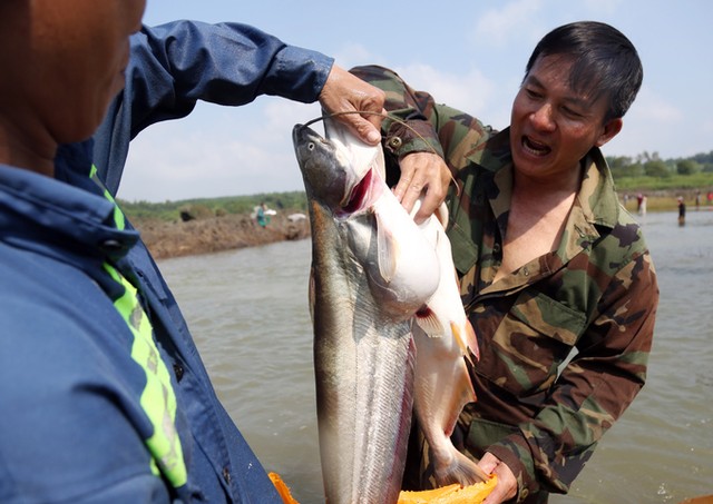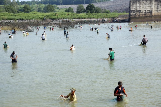 Người dân đổ xô bắt cá khủng dưới đập thủy điện Trị An