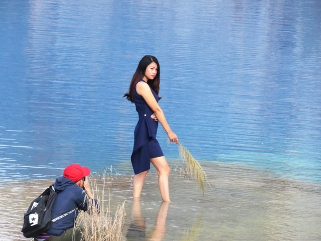 Nhiều bạn trẻ chọn hồ nước xanh làm "nền" cho những bức hình ưng ý.