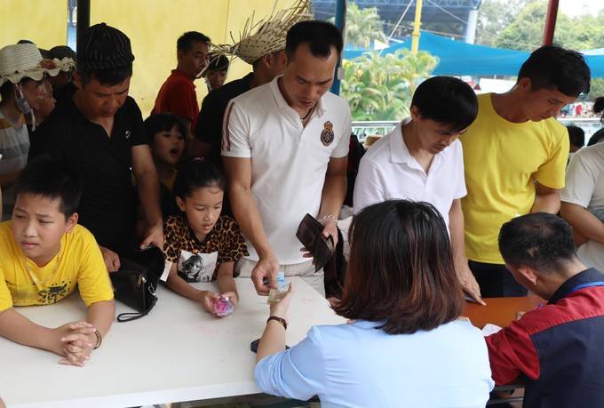 Người dân đứng chật kín các quầy vé. Theo Ban quản lý, trong ngày 27/4, khoảng 3.000 vé đã bán, những ngày sau số lượng đều tăng.