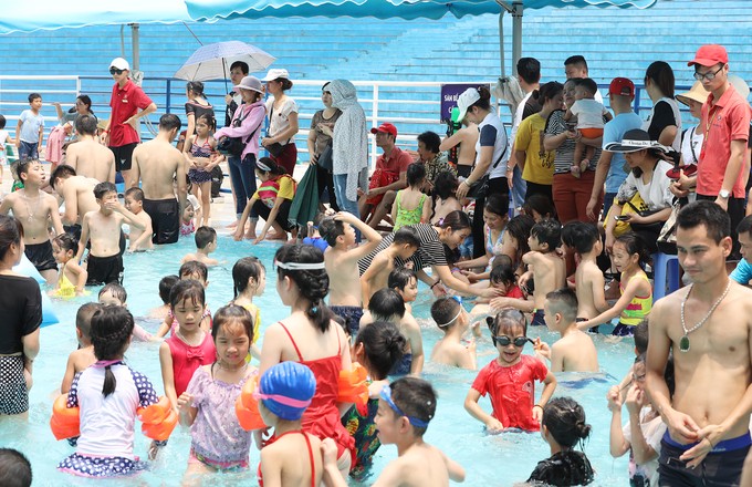 Bất chấp thời tiết nắng nóng, các gia đình vẫn có mặt để tận hưởng không khí những ngày nghỉ lễ.