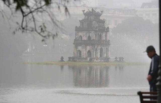 Tháp Rùa chìm trong sương sớm sáng mùng 1 Tết