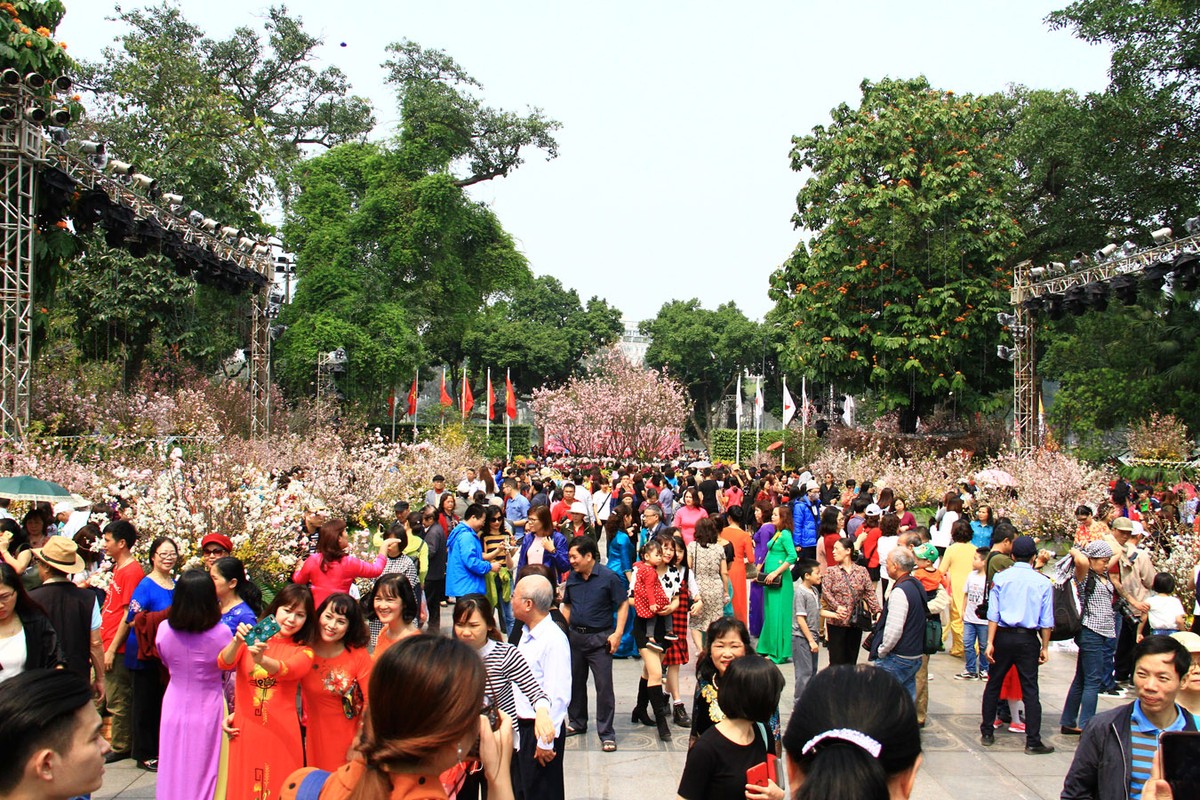 Khu vực tượng đài Vua Lý Thái Tổ đông hơn thường lệ vì có Lễ hội hoa.