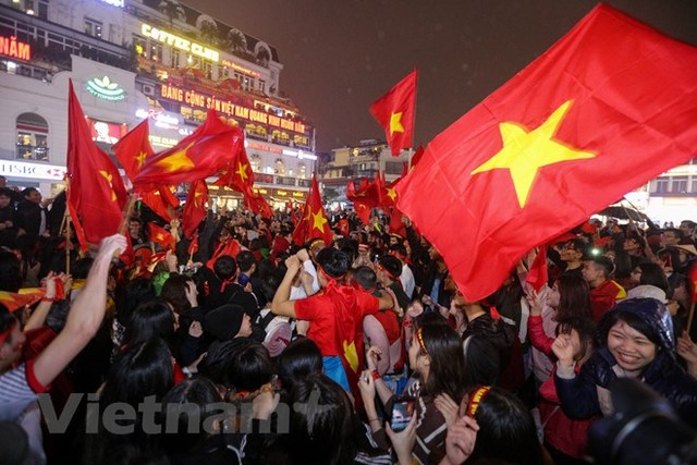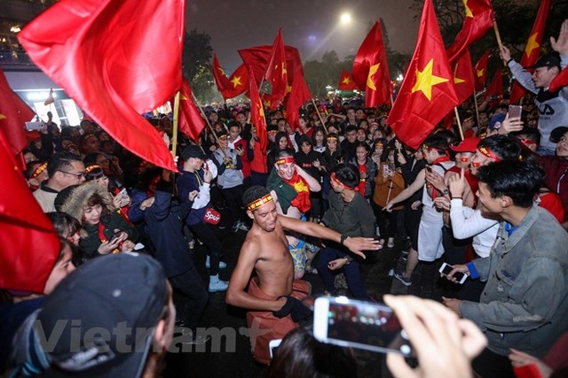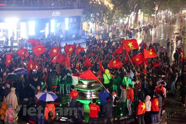 Ngay sau trận chung kết của U23 Việt Nam, hàng ngàn người hâm mộ vẫn nán lại khu vực hồ Gươm để ăn mừng