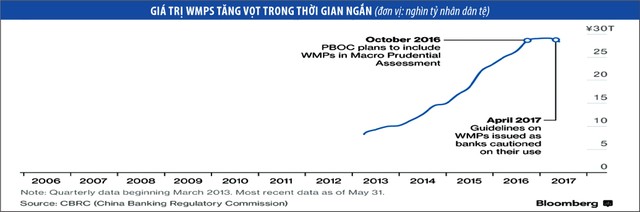 Ước tính có hàng nghìn tỷ USD đòn bẩy đang nằm trong mọi loại tài sản tại Trung Quốc, trong đó nổi bật nhất là các sản phẩm quản lý tài sản (wealth management products – WMPs). Theo đó, WMPs tương tự như một chứng chỉ tiền gửi, do ngân hàng phát hành với cam kết mang lại lợi suất cao hơn so với tiền gửi tiết kiệm.