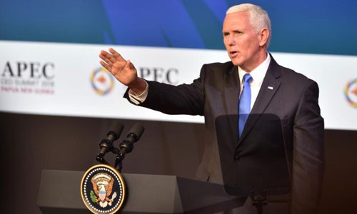 Phó tổng thống Mỹ Mike Pence phát biểu tại hội nghị APEC ở Papua New Guinea. Ảnh: CNN.