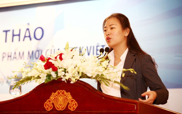 Bà Đào Thanh Hồng, đại diện công ty PVFC Capital giới thiệu sản phẩm quỹ mở đầu tư vào cổ phiếu ngành dầu khí