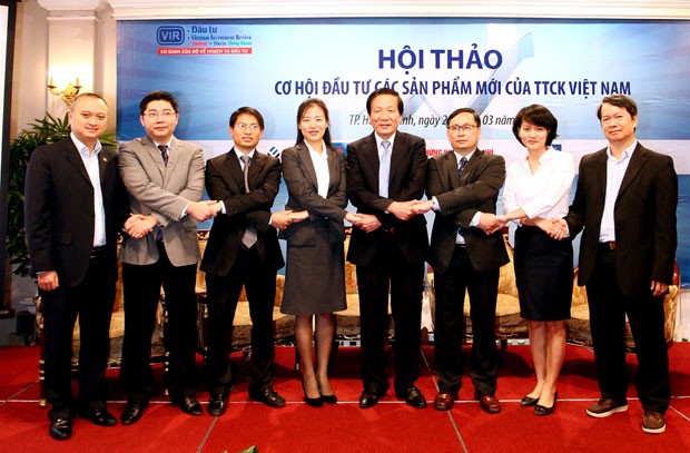 Ban tổ chức và các diễn ra chung tay tại Hội thảo " Cơ hội đầu tư các sản phẩm mới của TTCK Việt Nam"