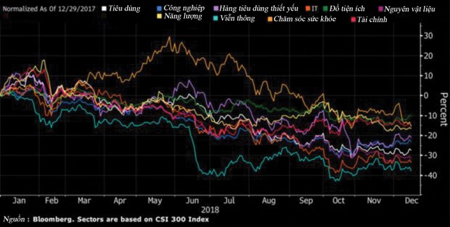 Giá cổ phiếu của mọi nhóm ngành công nghiệp trên thị trường chứng khoán Trung Quốc đều xuống dốc.