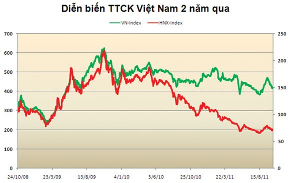 Gần 2 năm nay, TTCK Việt Nam ngập trong không khí rất ảm đạm. Giá cổ phiếu sụt giảm thê thảm, hiện có hơn 1/3 số cổ phiếu niêm yết có giá thấp hơn mệnh giá, cá biệt có những mã chỉ còn 2.000-3.000 đồng/cổ phiếu. Thanh khoản cũng sụt giảm nghiêm trọng, rất nhiều nhà đầu tư, trong đó có các nhà đầu tư tổ chức trong và ngoài nước, đang cố gắng bán tháo cổ phiếu để rút ra khỏi thị trường.