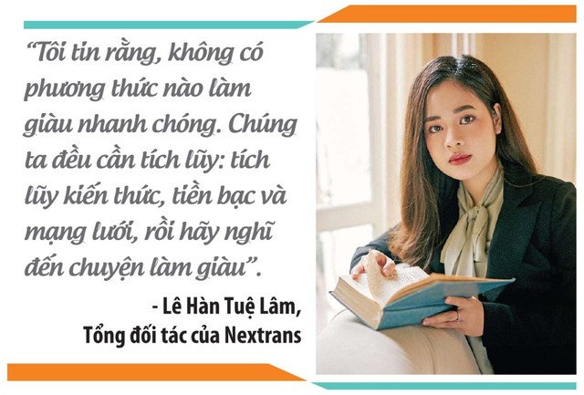 “Tôi tin rằng, không có phương thức nào làm giàu nhanh chóng. Chúng ta đều cần tích lũy: tích lũy kiến thức, tiền bạc và mạng lưới, rồi hãy nghĩ đến chuyện làm giàu”, Tuệ Lâm chia sẻ.