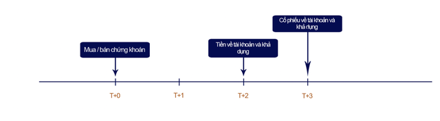 Theo quy định hiện nay, chứng khoán sẽ về tài khoản vào thời gian 15h30-16h ngày T+2 – thị trường đã kết thúc giao dịch nên nhà đầu tư chỉ có thể giao dịch chứng khoán mới về trong ngày tiếp theo, T+3.