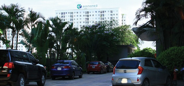 Tương tự, tại dự án nhà ở xã hội Ecohome 2, xung quanh các tòa nhà cũng có hàng chục chiếc xe ô tô của cư dân đậu kín sân. Nhiều xe còn đậu dọc các tuyến giao thông chính (đường nội bộ).