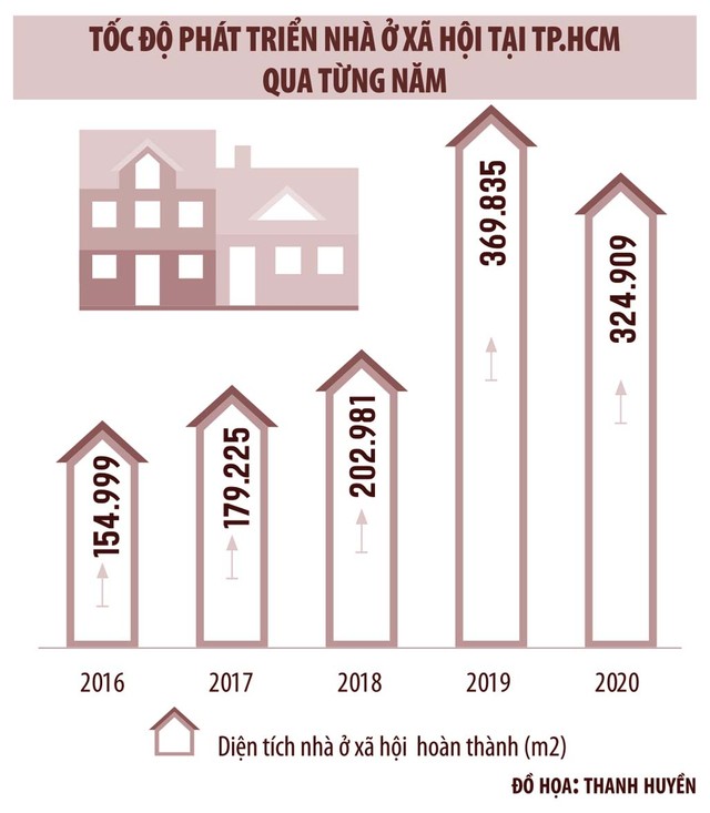 Giai đoạn 2016 - 2020, TP.HCM xây dựng hoàn thành, đưa vào sử dụng 19 dự án, diện tích sàn nhà ở xã hội toàn Thành phố tăng thêm 1,23 triệu m2 sàn, đạt 69,2% so với chỉ tiêu đề ra (chỉ tiêu theo Kế hoạch phát triển nhà ở giai đoạn 2016 – 2020 là 1,78 triệu m2 sàn).