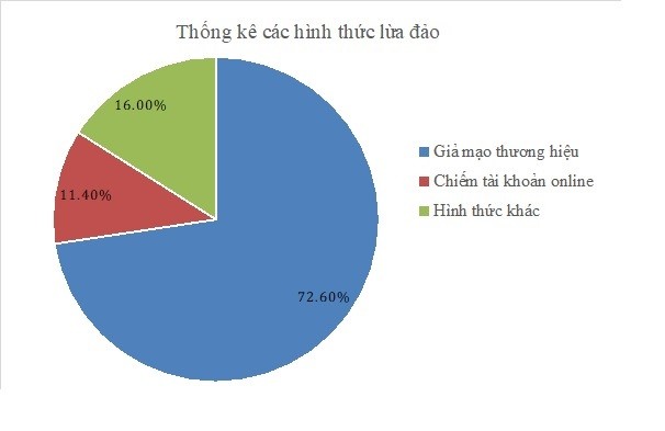 Để thực hiện các cuộc lừa đảo trực tuyến, đối tượng lừa đảo đã áp dụng nhiều biện pháp khác nhau nhằm tạo niềm tin, nhưng có thể phân làm 3 nhóm chính: Giả mạo thương hiệu chiếm 72,6% (giả mạo SMS, website, số điện thoại của cơ quan chức năng, ngân hàng, công ty tài chính,…); Chiếm đoạt tài khoản online (Facebook, Zalo,..) chiếm 11,4%; Các hình thức khác (việc làm online, lừa đảo tình cảm, app cho vay,..) chiếm 16%.