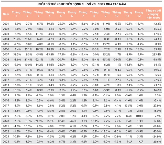 Theo thống kê của Công ty Chứng khoán Yuanta Việt Nam, trong tháng 11 từ năm 2000 đến năm 2024, chỉ số VN-Index có mức tăng trung bình 2%, với xác suất tăng 50%; trong đó, mức tăng mạnh nhất là 23,8% và giảm mạnh nhất là 14,1%.
