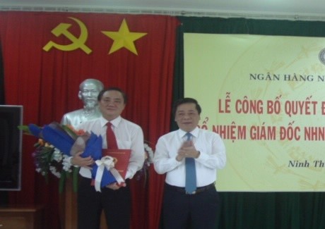 Liên quan đến công tác cán bộ, Phó Thống đốc Ngân hàng Nhà nước Nguyễn Kim Anh vừa trao Quyết định số 1623/QĐ-NHNN của Thống đốc Ngân hàng Nhà nước về việc bổ nhiệm đồng chí Hồ Chu Vân, Giám đốc Ngân hàng TMCP Công Thương chi nhánh tỉnh Ninh Thuận giữ chức vụ Giám đốc Ngân hàng Nhà nước chi nhánh tỉnh Ninh Thuận.