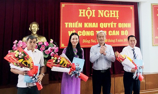 Bí thư Tỉnh ủy, Chủ tịch HĐND tỉnh Đồng Nai trao quyết định và chúc mừng các cán bộ được bổ nhiệm.