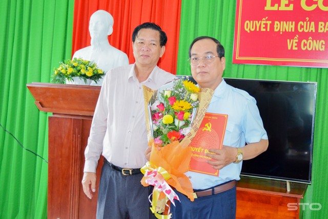 Phó Bí thư Thường trực Tỉnh ủy Sóc Trăng trao quyết định và chúc mừng đồng chí Lý RoTha.
