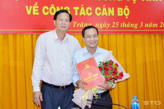 Phó Bí thư Thường trực Tỉnh ủy Sóc Trăng trao quyết định và chúc mừng đồng chí Quách Hoàng Sáu.