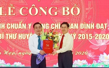 Chiều 5/5, đồng chí Nguyễn Xuân Sơn, Phó Bí thư Thường trực Tỉnh ủy, Chủ tịch HĐND tỉnh Nghệ An đã trao Quyết định số 3620 QĐ/TU của Ban Thường vụ Tỉnh ủy Nghệ An về việc chuẩn y đồng chí Phan Đình Đạt giữ chức Bí thư Huyện ủy Quỳ Hợp, nhiệm kỳ 2015 - 2020.