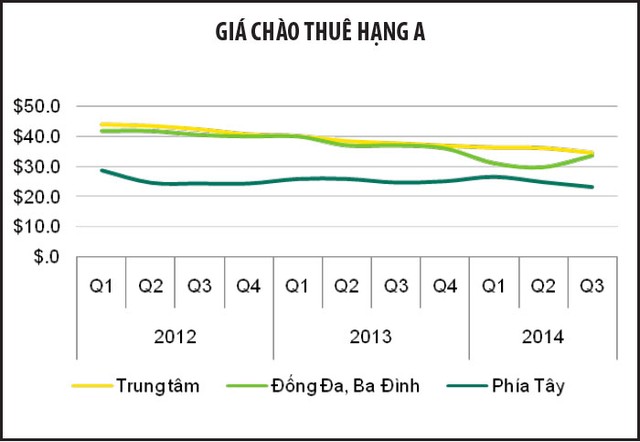 Tại khu vực trung tâm TP.HCM, chủ đầu tư vẫn cố gắng giữ giá thuê ổn định, trong khi có khá nhiều dự án lớn chuẩn bị được đưa vào thị trường. Về ngắn hạn, giá thuê vẫn được giữ ổn định, nhưng tại khu vực ngoài trung tâm, giá thuê có chiều hướng giảm nhẹ.