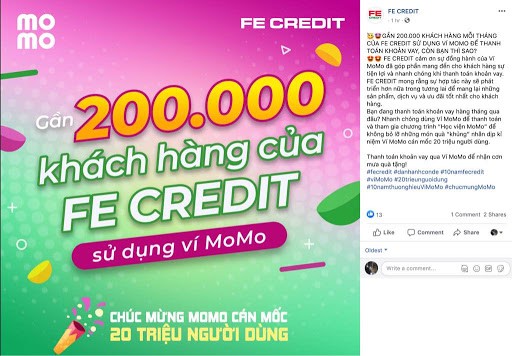 Trong đó, các công ty tài chính công nghệ ngày càng tích cực trong việc tích hợp Ví điện tử MoMo là một trong những hình thức thanh toán quan trọng của mình.
