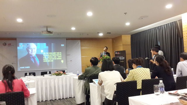 (ĐTCK) Chiều nay (8/5), Ban tổ chức đã tổ chức họp báo để giới thiệu Diễn đàn Đầu tư Việt Nam 2014 (VIF 2014) với chủ đề “Sự trỗi dậy của các thị trường mới nổi & cơ hội nào cho Việt Nam?”. Sự kiện do Báo Đầu tư, Công ty Chứng khoán HVS Việt Nam và Công ty Quản lý quỹ Asia Frontier Capital (AFC) phối hợp tổ chức sẽ diễn ra vào ngày 19/6/2014 tại Trung tâm Hội nghị WhitePalace, TP. HCM với điểm nhấn là sự xuất hiện của nhà tư vấn đầu tư huyền thoại Marc Faber - người được mệnh danh là Mr. Doom, có tầm ảnh hưởng lớn nhờ những dự báo chính xác của ông về thị trường tài chính thế giới. Báo Đầu tư Chứng khoán giới thiệu một số hình ảnh của buổi họp báo. (Lê Toàn thực hiện).